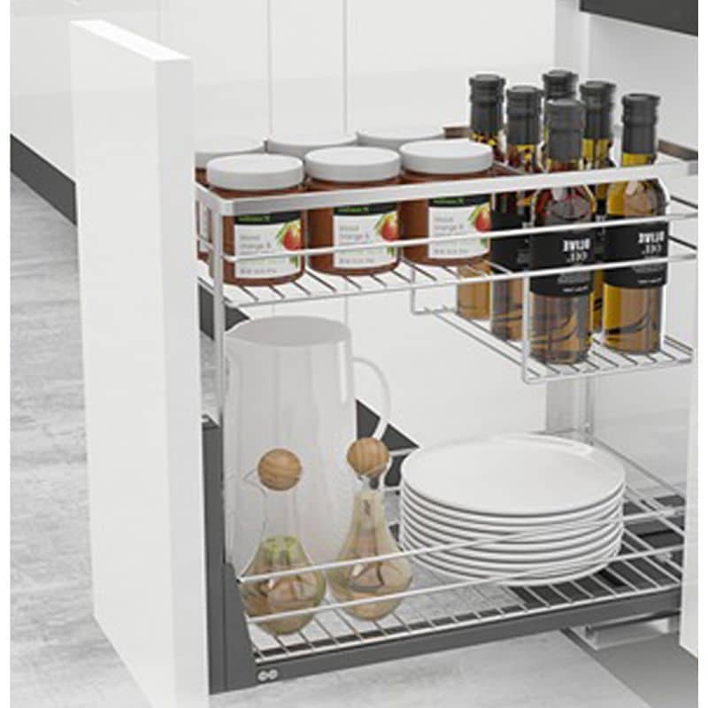 - Trọn bộ gồm: Bộ ray giảm chấn lắp đáy, 2 bas mặt trước, 2 bas giữ ray, khung rổ, 2 bas nhựa kết nối khung và rổ, 18 ốc lắp đặt.
