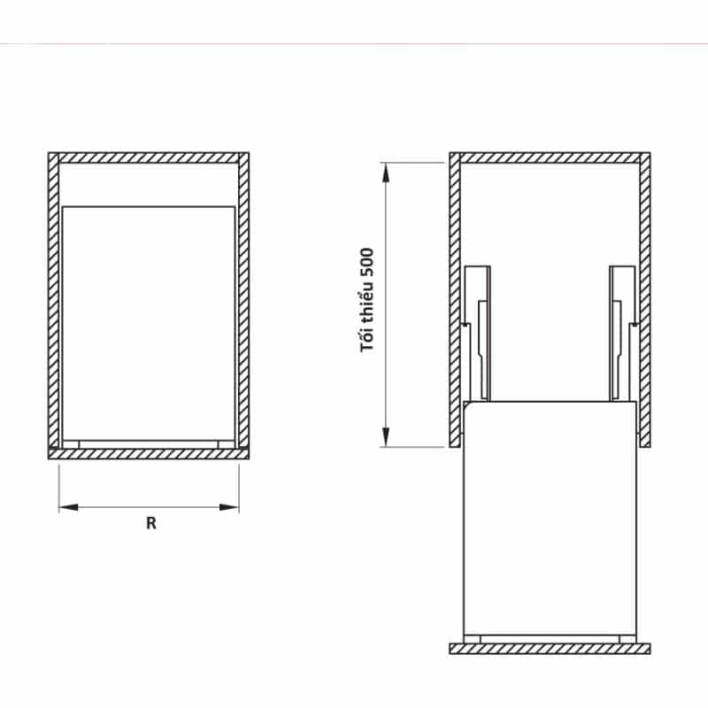 - Chiều sâu lọt lòng (S): Tối thiểu 500