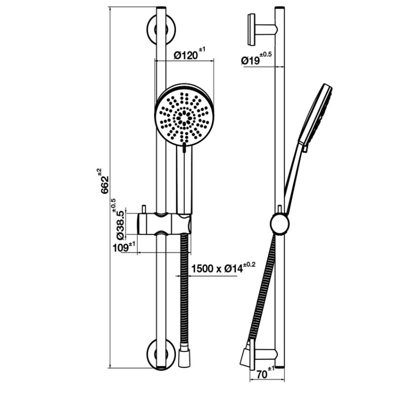 - Dây sen PVC: 1500mm, chống xoắn, chống kéo uốn, trơn và dễ lau chùi