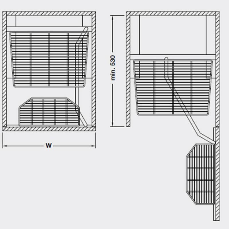 - Chiều sâu khoang tủ tối thiểu: 530mm