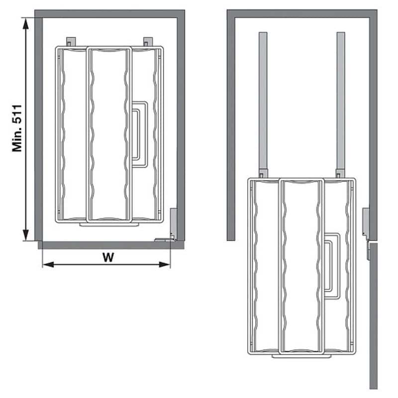 Thông số kỹ thuật của rổ kéo đựng dụng cụ vệ sinh Portero 2 Hafele 545.48.261